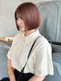 ダブルカラーならではの透明感とシアー感が可愛い、ピンクベージュカラー。ピンク系のカラーはツヤ感も出やすいので、まとまりのあるミニボブとの相性抜群です◎