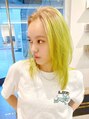 根本のベージュとライムグリーンのルーツカラー。根本のまろやかなベージュはどんな髪色にも合うので、ライムグリーン以外の組み合わせもできます。オススメは水色っぽいブルーやピンク、オレンジです。クリアな発色のカラーとの組み合わせが○です。