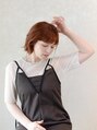抜け感のある大人可愛い顎ラインボブ。オレンジベージュカラーで柔らかみある印象に。オイルやバームを髪全体に馴染ませるだけできまる簡単スタイリング。