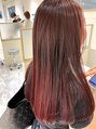 ブリーチを使わずに1回のカラーで赤の髪色を彩る赤みの強いカラーに仕上げました