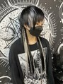 ブリーチ無しでプリンを隠しながら奇抜なヘアカラーにしたいとのご要望だったのでポイントの部分を黒との相性が良いホワイトシルバーにしてヘアスタイルも奇抜なカットとエクステで誰とも被らない襟足の長いウルフスタイルにしました!