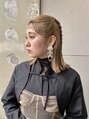 黒のワンピースと綺麗なハイトーンの髪の毛に合わせてシンプルだけどワンポイントあって綺麗めかっこいいヘアセット◎前髪のウェーブにラインストーンをのせて