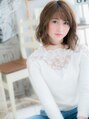 【スタイルは★ブックマーク★が便利】レースのようなゆるふわ質感のくせ毛風カールがガーリーなエアリーミディ。厚めバングや斜めバング、耳かけも大人かわいい。前下がりフォルムで小顔に見せてもGOOD!ナチュラルボブや大人ボブからのイメチェンにも◎