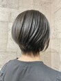 大人かわいい前下がりのショートボブはシャープに切ったライン、襟足をしめてスッキリ見せたりと、メリハリを効かせて絶妙なバランスに!カラーをする場合はシークレットハイライトで束感、質感をプラスしてくすみカラーのアッシュベージュを!
