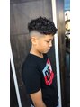 最近ピクミン4にハマっているニエガワです。今回のデザインはスペインカール!スペインカールはトップを長めに設定したショートスタイルにしっかりめのパーマを当てたデザインになります。フェードにする必要はないのですが、フェードデザインが主流です。