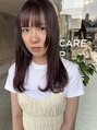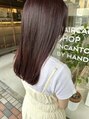 艶のあるピンクブラウン。ピンクとパープル、レッドなどのカラー剤を使ってカラーしています。ナチュラルで可愛いヘアに、毛先をワンカール巻いてオイルでスタイリングしました。
