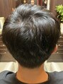 サイドが伸びて来ると、とても気になるシルエットになるので地肌が見えて、白く見えないように短く刈り上げます。 バックの長さもあまり短くなり過ぎないように、白く見えないように短くします。 上の長さは自然に前に流れるように伸びた分カット