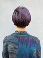 フロント長めのショートスタイル。襟足部分は刈り上げてメリハリのあるスタイルです。サイドはノーズラインまで切り込んでいます。スタイリング剤はn.シリーズのポリッシュオイルを全体に馴染ませれば濡れた艶っぽい質感に。凛としたカッコよさがテーマです。