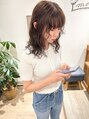 【気に入ったスタイルは''ブックマーク''しておくと便利です】【スタイリスト 高塚 栞里】ミディアムレイヤーにコテ巻き風パーマでゆるっと動きをつけています。顔まわりだけ少し短めにして結んでも可愛いポイントに。