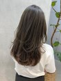 緩やかなカール感で動きと軽さのでるレイヤースタイル、前髪かシースルーで流れるようにカットする事で抜け感を出しています!赤みを消してくれるオリーブにちょっと柔らかくベージュ味をプラスして絶妙カラー