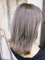 ブリーチをして上から紫とグレーをのせてベージュカラーにしました。カットもレイヤーを入れてくびれるスタイルにしました。