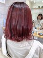 これからの季節にぴったり!オシャレボブ。重めボブでも前髪を軽くしてあるので、抜け感がでてとても◎カラーはブリーチなしでチェリーピンク。インナーは暗くして引き締め効果を出しつつ、さりげなくオシャレに!