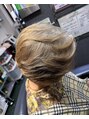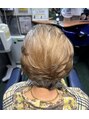 前髪が落ちてきて鬱陶しいとの事なので、フェイスラインだけ軽くクリームパーマをかけて動きを出し、レイヤーカットとグラデーションカットで後ろに流れるようにカットしました。