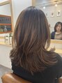 ウルフのようにレイヤーたっぷりなスタイルとハイライトの相性は◎全体はブローをして、仕上げにアイロンをかるくスルーしています。