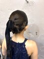 ベロアリボンにタイトシニヨンです大人女性なスタイルになっています。 #銀座ヘアセット#銀座サロン#ヘアセットサロン#セットサロン#東京#ヘアアレンジ#結婚式#アレンジ#おしゃれヘア#ポニーテール#ハーフアップ#ダウンアレンジ#編み下ろし#ヘアセット
