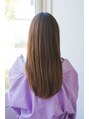 センターパートで分けて顔回りにあるレイヤーに動きをつけてストレートの中にもニュアンスでラフさが出るように仕上げました