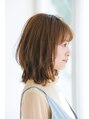 透明感とツヤのあるブラウンベージュカラーで動いた時にチラっと見える軽い束感がポイントです。表面のレイヤーをいれすぎず少しだけ軽くするだけでふんわりと抜け感がでます。