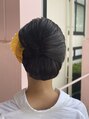 結婚式のお母様の和装ヘアアレンジです。落ち着いた雰囲気を上品な形でまとめます。