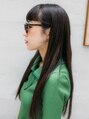 重め前髪パッツンにワンレングスの重ためスタイルです!ストレートヘアが決まりやすく、モードなイメージやかっこいい仕上がりがお好みの方にぴったりのスタイルです。カラーで黒く落としすぎない事による軽さが絶妙な雰囲気を出してくれます!