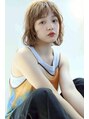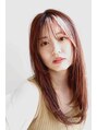 前髪長めの外ハネボブスタイルです。全体にレイヤーが入っているので重すぎず動きを出してガーリーな雰囲気に。カラーリングは派手すぎずナリュラルに馴染むようなほんのりピンクベージュに。内巻きに巻いてもかわいいです。