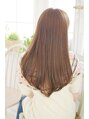 内巻きロングヘアー。短めの前髪が似合うワンカールヘアースタイルです。オシャレでナチュラルなヘアーが人気の秘訣です。