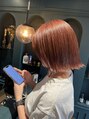 【お客様style】ピンクオレンジ/オレンジベージュ/ぱつっとボブ