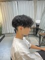 【センターパート×ツイストスパイラルパーマ】スッキリとした刈り上げセンターパートに、ランダムに落ちるツイストスパイラルパーマで動きをプラス。