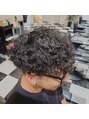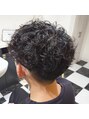 サイドからネープにかけてすっきりフェード風刈り上げでツーブロックにトップは波巻きパーマも混ぜつつ、オシャレに強めにカール感が残るようにしかっこよく