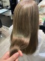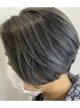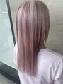 グレイヘアのお客さまで過去のブリーチ履歴と前々回のご来店の縮毛矯正の履歴を考慮し、最大限配慮しながらベースのブリーチを施して、ピンクで引き締めのローライトを入れてベースをプラチナホワイト系に仕上げました。