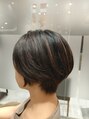 地毛黒髪に映えるハイライトはさり気なく素敵な大人感が出ます。全体は染めたくないけど、オシャレな感じに、白髪が少し気になり出したなという方にもオススメ!