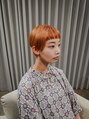 ブリーチ後の明るめにあざやかなオレンジをON。マッシュで伸びた顔まわりをあえて残して、前髪は短めにアーチでカットしたモードとカジュアルが合わさったスタイル