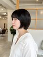 ショートから伸ばし中のストレートアレンジ。毛量を調節し、アウトラインをパツッとする事で綺麗なショートボブになります。