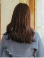 胸くらいの長さでワンレングスの角を取っただけのシンプルスタイル。顔まわりの髪をあご下に設定して、前髪も動きやすく毛先を軽く。カラーは暗めのブラウンですが、しっかりと透明感が出るようにしました。