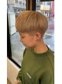 全体をしっかりブリーチ後、ホワイトミルクティー色にオンカラー♪刈り上げつつも全体をマッシュで丸みを残してボーイッシュにならないようにカットしてます!
