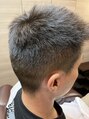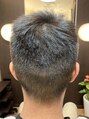 短くしたいが地肌が見えるぐらい短くするといかにも刈り上げました!と見える事を避けたい場合は地肌が見えないような厚みでカットする! バリカンは耳周りを3ミリ、それ以外を6ミリベースで入れる。