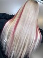 ホワイトカラーに個性派レッドハイライトをエクステにてデザイン付けしてます!赤はあえてエクステなので色落ちしません!