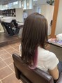 - ブリーチで抜いたインナー部分にピンクパープルをのせました!全体にはなじみやすいミルクティーベージュを