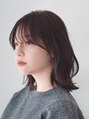 ロブ ミディアム 切りっぱなし 外ハネ 前髪 暗めカラー