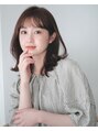 ロブ ミディアム 切りっぱなし 外ハネ 前髪 暗めカラー