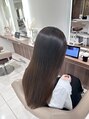美髪矯正でメンテナンス。半年以上前に美髪矯正をかけさせてもらいましたが、いい感じに縮毛矯正が残っていてBeforeでも綺麗なストレートです。今回は根元のクセ毛を伸ばして毛先は毛髪強化をしていきます。