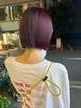 - ストレートタッチのボブシンプルにおしゃれに決まります◎カラーはレッド、パープルをミックスした暖色系