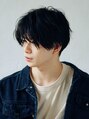 メンズの刈り上げマッシュスタイルです。襟足を刈り上げてラインを前下がりに作っているので、しめる所はしめてタイトで大人っぽくセクシーな雰囲気に仕上げています。前髪は少し長めに設定してあるので、アップバングのセンターパートスタイルとも相性◎