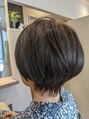 乾かすだけでまとらるショートボブ◎女性らしさをkeepする為に襟足は少し長め設定で。。。前から見たときのチラ見せ襟足が小顔みせ◎◎抜群スタイリング剤なしでも自然なボリュームと丸みで簡単スタイリング♪