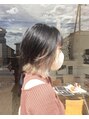 モード感のあるショートウルフ。表面はブルーブラック、フロント内側からサイドとバックにかけてブリーチをしてスモーキーベージュのセクションカラーを入れました!オーバーとアンダーのコントラストが個性的なスタイルです!