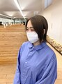切りっぱなしボブスタイル。カラーはハイライトカラーを入れて全体にベージュカラーで仕上げてます。
