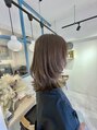 肩に当たる長さの外ハネウルフレイヤーオシャレですね☆カラーも透明感あるベージュが素敵☆