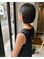 ダークグレージュのカラーで艶とシンプルな切りっぱなしボブで清潔感を出しました。襟足ギリギリの長さになります。