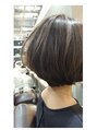 襟足がコンパクトで後頭部の丸みの高さが少し下になっていてあまりレイヤーの段差が入っていない落ち着きのあるボブスタイル。表面にハイライトを入れ軽さと動きをプラス。ヘアアイロンで毛先を巻いたり耳に掛けてアゴラインを出したりアレンジも色々です。