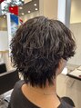 黒髪ショートウルフサーフカールニュアンスパーマツーブロック