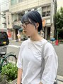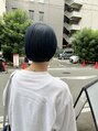 - ケアブリーチで透け感のあるネイビーブルーにして、カットは襟足かつかつのミニボブにしました。